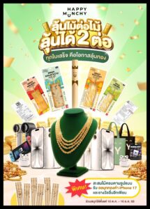 กว่าแคสำหรับแคมเปญ ลุ้นไม้ต่อไม้ ลุ้นได้ 2 ต่อ” Happy Munchy ฉลองครบรอบ 10 ปี จัดหนัก แจกจริง ทุกไม้ คือโอกาส ทุกใบเสร็จมีสิทธิ์ลุ้นทอง iPhone และของรางวัลอีกมากมาย โดยมีไฮไลท์ ต่อที่ 1: ทุกใบเสร็จจากการซื้อออมุก Happy Munchy จากร้านค้าที่ร่วมรายการ มีสิทธิ์ลุ้นสร้อยคอทองคํา และ ต่อที่ 2: สะสมไม้ให้ครบรูปแบบ ลุ้นรับของรางวัลใหญ่ทันที เช่น ออมุกทองคํา 1 บาท, iPhone 17, AirPods, Nintendo Switch และ ของรางวัลอื่นๆ กว่า 1,000 ชิ้น ตั้งแต่วันที่ 16 ตุลาคม – 16 ธันวาคม 2568