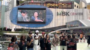 ”แชป วรากร“ พระเอกของเรื่องกล่าวเสริม “ใช่ครับ กลางสี่แยกเลย มันว๊าวมากๆ ทุกคนสามารถมาเก็บโปรเจ็คท์หนังได้ถึงช่วงสิ้นปีนี้นะครับ แล้ววันนี้เรามาเดินทรูปกันสนุกมากทั้งในห้างและนอกห้าง MBK ได้เจอแฟนๆ แล้วทุกคนจำแม่หน่อยได้หมด แม่หน่อยเป็นอมตะเป็นตำนานของจริงเลยครับ ”